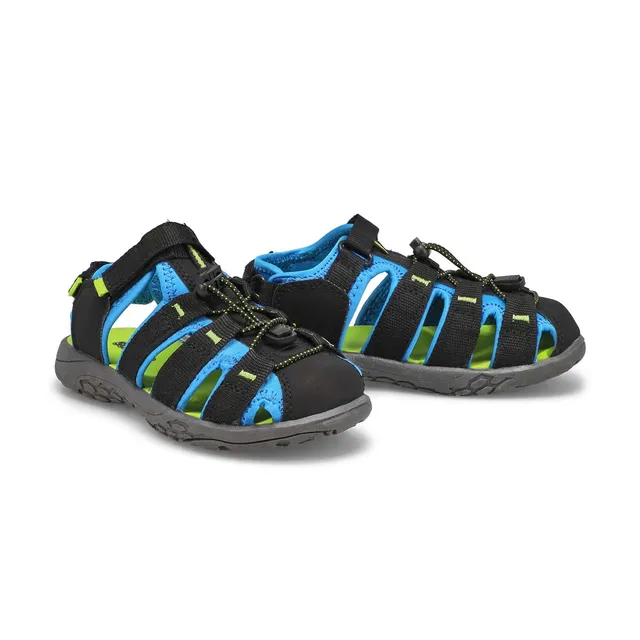 Whether you’re taking the kids to play mini golf or for a canoe ride, keep their feet comfortable and protected in a pair of the Kyle black lime green fisherman sandals. Featruing a waterproof synthetic upper. Quick-drying, moisture-wicking lining. Adjustable forefoot hook and loop strap. The Kyle fisherman sandals is designed with a synthetic rubber outsole.