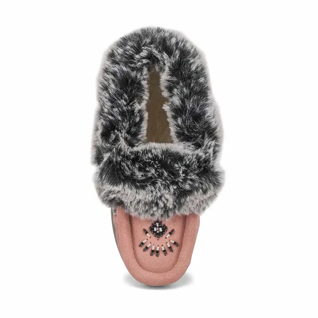 Girls Cute 6 Jr Faux Rabbit Fur Moccasin – Pink