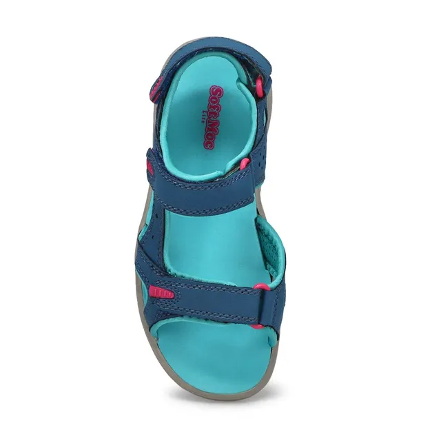Whether you’re taking the kids to play mini golf or for a canoe ride, keep their feet comfortable and protected in a pair of the Daisy navy/ turquoise sport sandal from SoftMoc. Featuring a PU nubuck upper. Quick-drying, moisture-wicking lining. Adjustable forefoot hook and loop strap. The Daisy sport sandals is designed with a TPR rubber outsole.