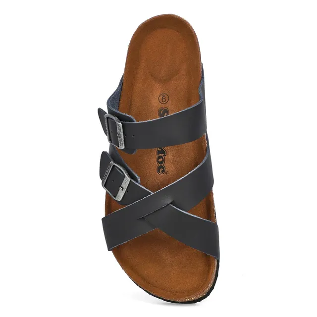 The Aragorn slide sandal by SoftMoc brings you style packed full of comfort. Featuring a crazyhorse leather upper with a soft, memory foam footbed for all day comfort. Adjustable instep strap for a secure fit. Built-in arch support and heel cup. Shock absorbing cork midsole with a lightweight durable EVA outsole.