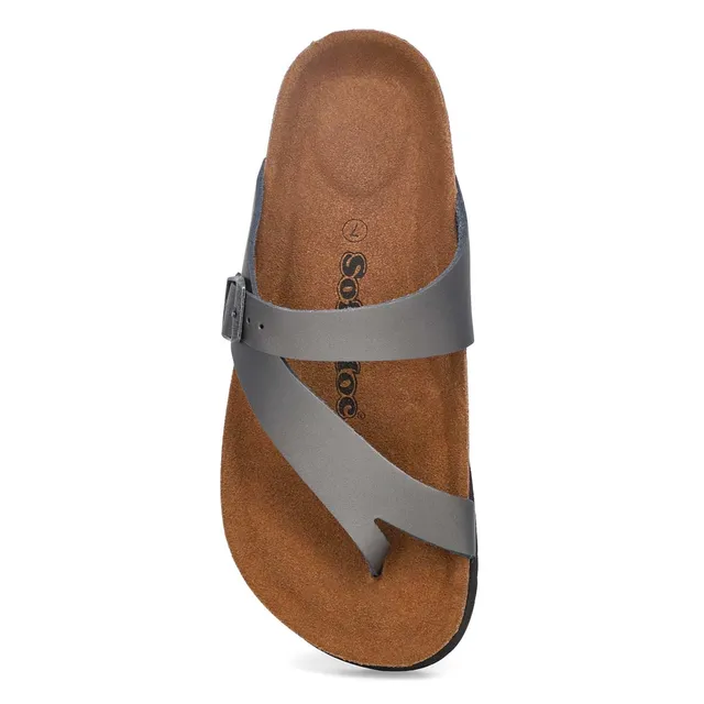 The Arwen pewter sandal by SoftMoc brings you style packed full of comfort. Featuring a genuine leather upper with a suede memory foam footbed for added comfort. Adjustable strap for a secure fit. Built-in arch support and heel cup. The Arwen is designed with shock absorbing cork midsole and an EVA outsole.