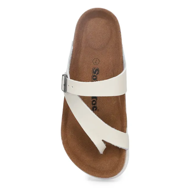 The Arwen white leather sandal by SoftMoc brings you style packed full of comfort. Featuring a genuine leather upper with a suede memory foam footbed for added comfort. Adjustable strap for a secure fit. Built-in arch support and heel cup. The Arwen is designed with shock absorbing cork midsole and an EVA outsole.