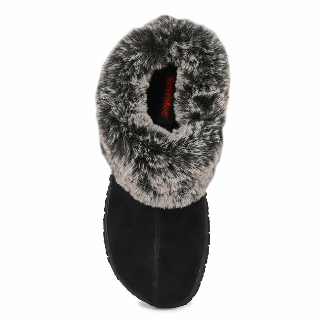 Style and comfort are the main reasons youll fall in love with the Beth Open Back black Slipper from SoftMoc. Featuring a beautiful suede upper with padded memory foam comfort. The Beth slipper from SoftMoc is designed with a durable TPR outsole. You will want to make these slippers part of your must-have list for this season!