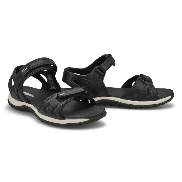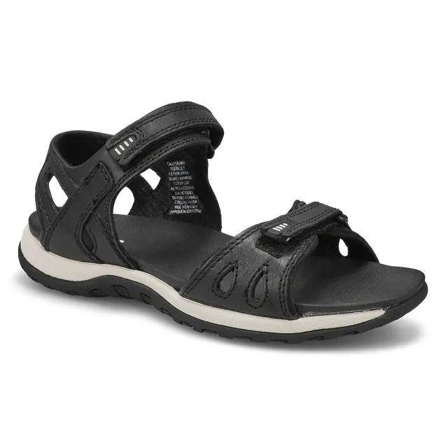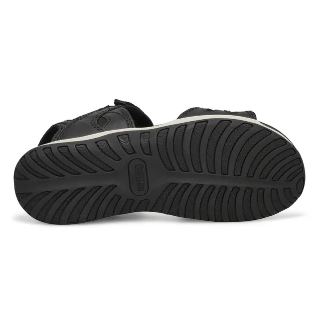 Its your time in the sun so enjoy it in the Caley3 black/white sport sandal from SoftMoc. Featuring a nubuck upper with a soft, cushioning footbed for added cushioning and comfort. Soft spenco lining surrounds the foot in comfort whitle the adjustable straps with hook and loop closure are perfect for a secure fit.