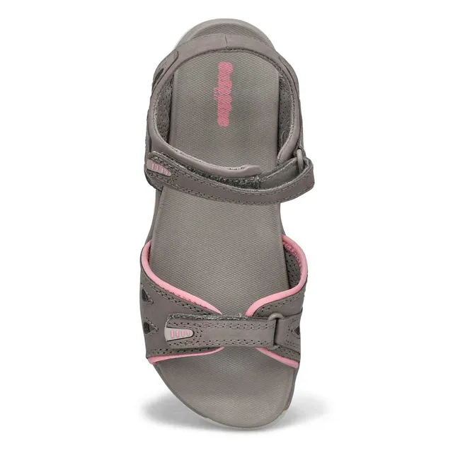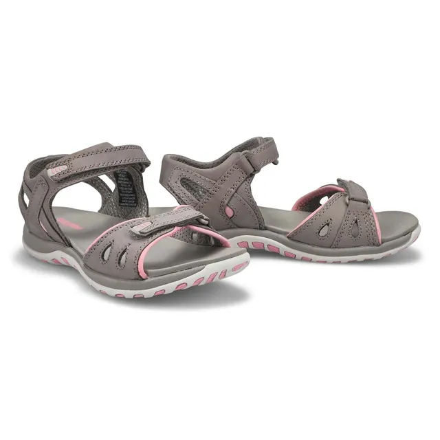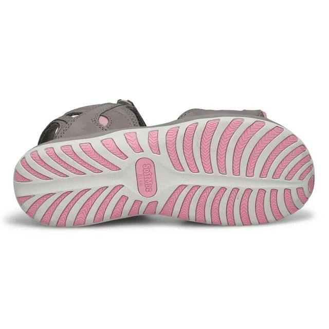 Its your time in the sun so enjoy it in the Caley3 grey pink sport sandal from SoftMoc. Featuring a nubuck upper with a soft, cushioning footbed for added cushioning and comfort. Soft spenco lining surrounds the foot in comfort whitle the adjustable straps with hook and loop closure are perfect for a secure fit.