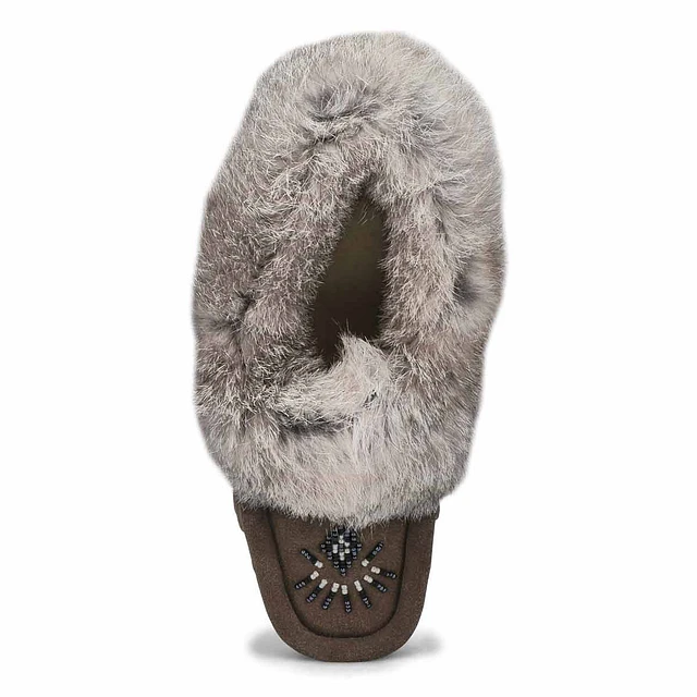 Womens Cute 5 Rabbit Fur Moccasin – Grey