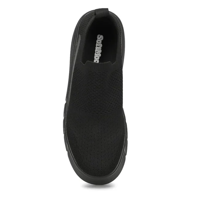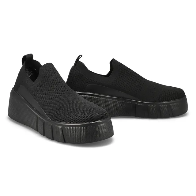 Step into casual comfort with these fashion forward Daley Platform black mono sneakers from SoftMoc. These platform sneakers feature an easy on, easy off design. The knit-textile upper will ensure comfort throughout the day. The man made, platform sole gives you a lift, and the duel pull tabs will offer a swift on and off motion.