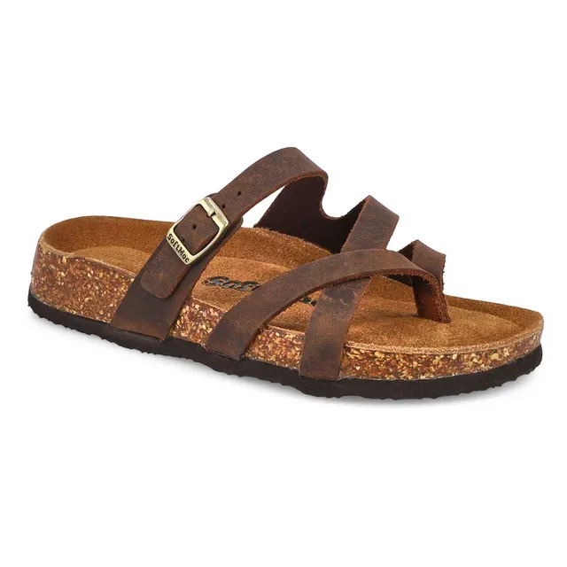 The Elanor thong sandal by SoftMoc brings you style packed full of comfort. Featuring a genuine smooth leather upper with a suede memory foam footbed for added comfort. Adjustable strap for a secure fit. Built-in arch support and heel cup. The Elanor is designed with shock absorbing cork midsole and an EVA outsole.