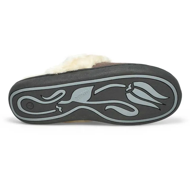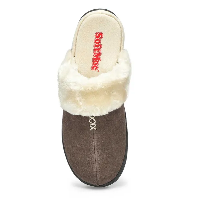 Youll enjoy just lounging around the house in the Pauline grey open back slipper from SoftMoc.