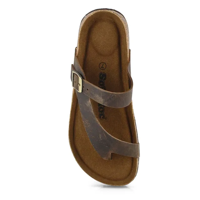 For casual summer style with all-day comfort, SoftMoc brings you the SABRINA brown memory foam sandal. Featuring a full grain leather upper with the SoftMoc logo detail on the side and also on the sole. The shock absorbing cork midsole helps for added comfort. You will want to make the Sabrina sandal part of your must-have list for this season!