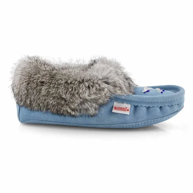 Womens SF600 Rabbit Fur Moccasin – Light Blue