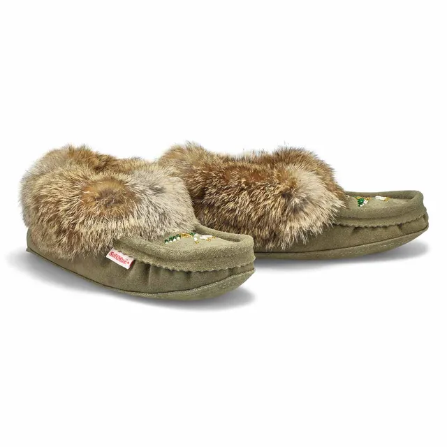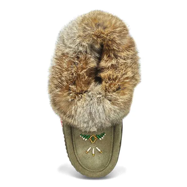 Womens SF600 Rabbitr Fur Moccasin – Sage