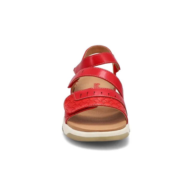 Built for customized comfort, the Wensy 01 vegan red combi casual sandal from SoftMoc is an ideal choice for warm-weather fun. Featuring a PU upper. Adjustable straps with a cushioned footbed for all day comfort. Top stitching detailing. The Wensy 01 vegan sandal is designed with a light, flexible polyurethane outsole.